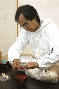 生漆は戦前までは日本でもたくさん採取されましたが、手間のかかる労働に人件費がかさむため、今では日本産漆はあまりに高価になってしまいました。私は通常の家具の塗装には、中国産の漆を使い、手間暇をかける工芸品には日本産漆を使います。質としては日本産漆の方が乾きやすい等の長所がありますが、数回塗る程度の普通の塗り方では見較べても違いは分からないと思います。