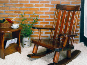 日本人の体型に合わせた小振りなロッキングチェアーです。ロッキングチェアーは揺らして遊ぶ物でなく、楽な姿勢で座ったり立ちあがったり出来るよう座の角度が変わる安息椅子です。