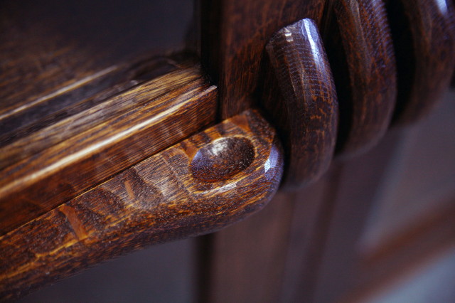 W179 D49 H80 cmナラ、凸凹削り、拭漆仕上げ