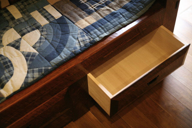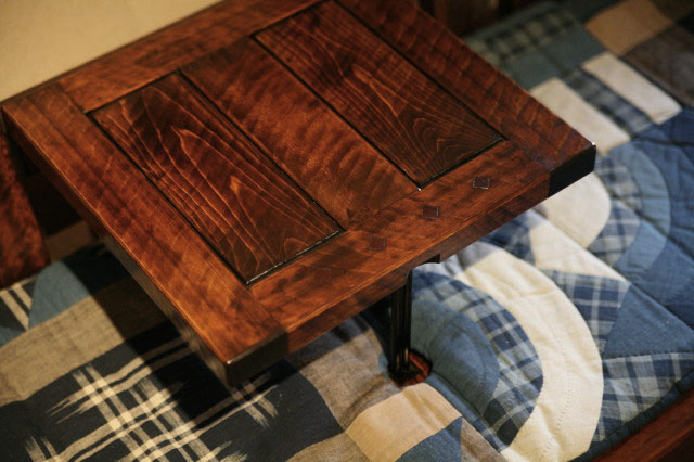 私が独立して最初に作った記念すべき作品です。あちこちに指物技法のホゾ先を見ることが出来ます。座面は縁側の板張りをイメージしています。
