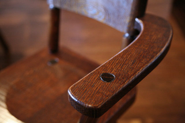 背の2本の丸棒の間が広いため、おしりのサイズを選びません。座面も刳っていますので、座布団なしでも長時間座ることが出来ると思います。