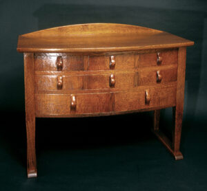 前面をアーチ状に削りだした、小粒ながら存在感のある、可愛い机です。